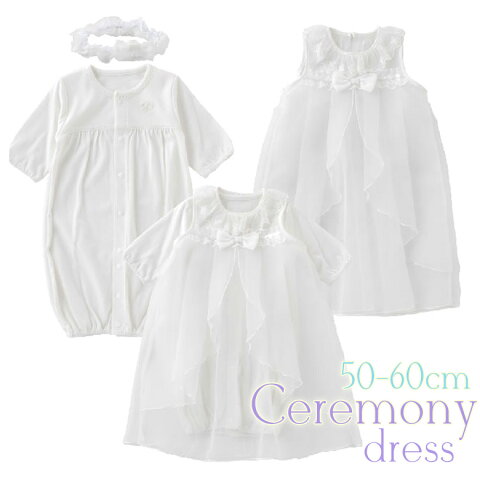 検索ベビー【セレモニードレス】 カバーオール、オーバードレス、ヘアアクセサリーの3点セット シロ 50-60cm 出産祝いとして、お宮参りの晴れ着として、いかがですか? 生まれたての赤ちゃんにも、 かわいらしいドレスでオシャレをさせてあげたい♪